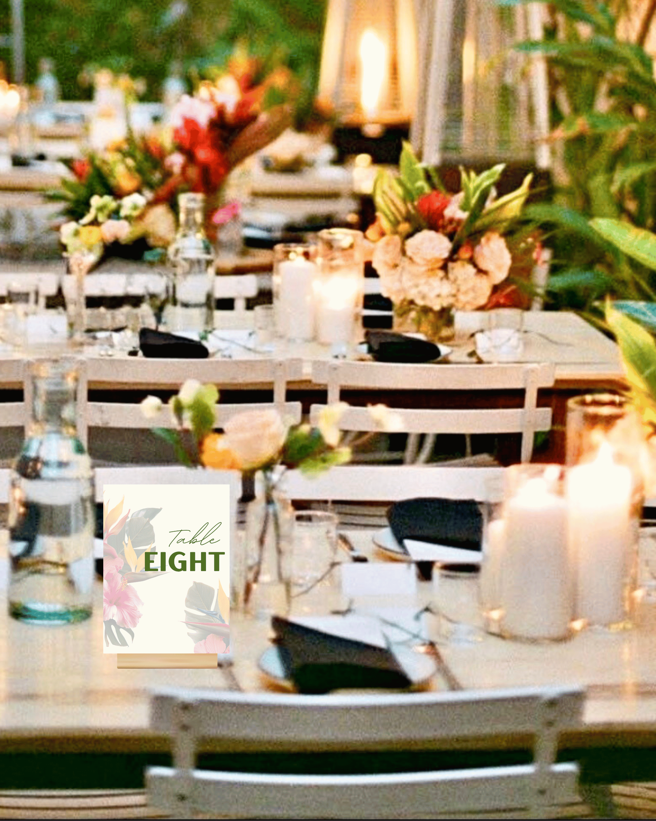 Each table number comes with a wooden sign holder block for easy and elegant display